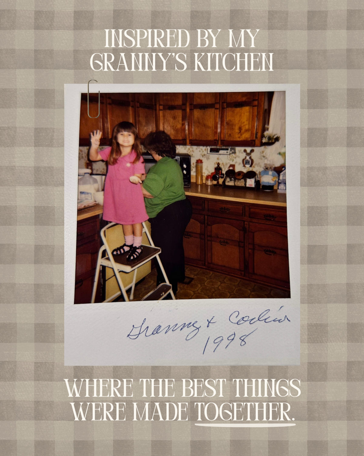 Granny was the matriarch of our family. Her Sunday lunches brought us together as she worked tirelessly in the kitchen to ensure everyone was fed, with plenty of second helpings to go around. My favorite place was right next to her, helping her make biscuits, peel potatoes, or shell lima beans. Here, the best things were made together.